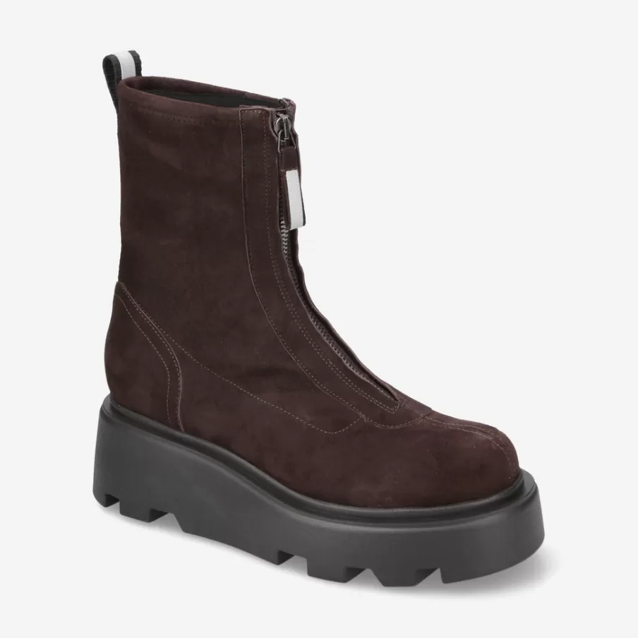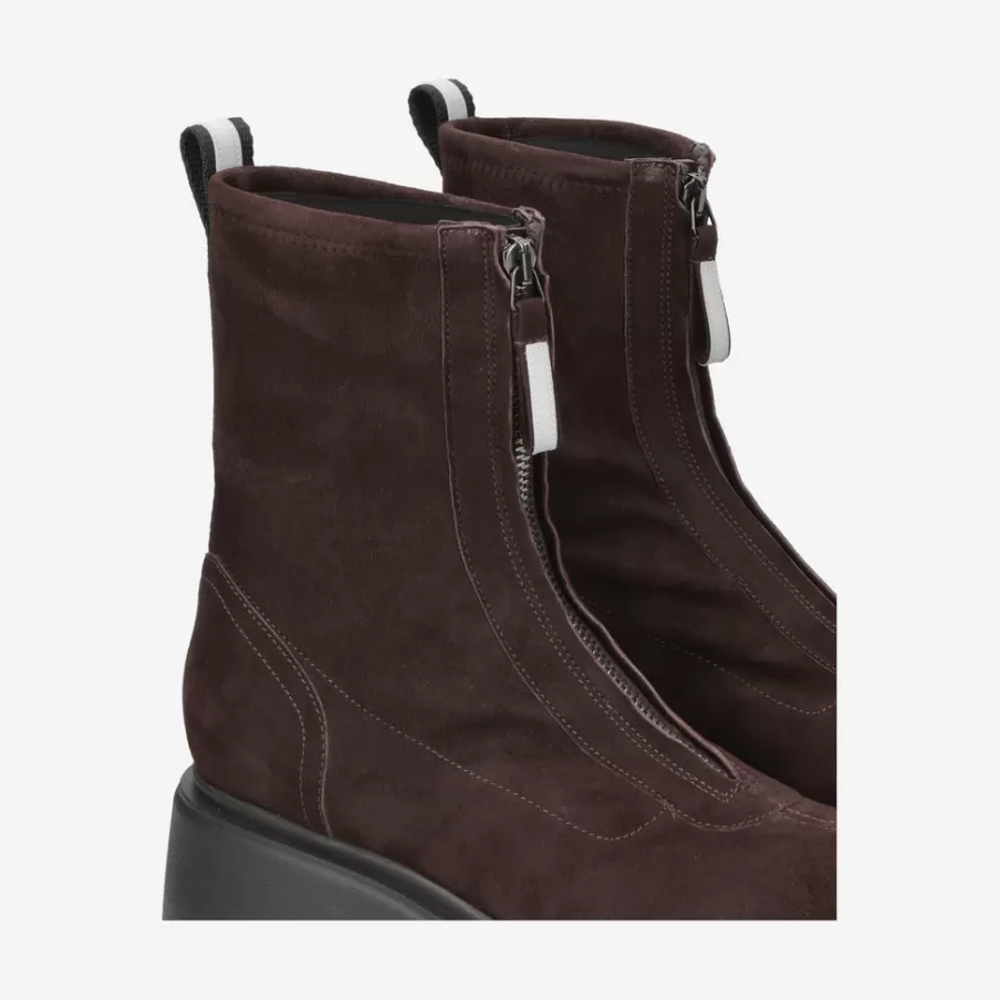 Modern Elegance For The Suede Ankle Boots, Defined By The Front Zip And The Lettering Logo Printed On The Rear Tie.